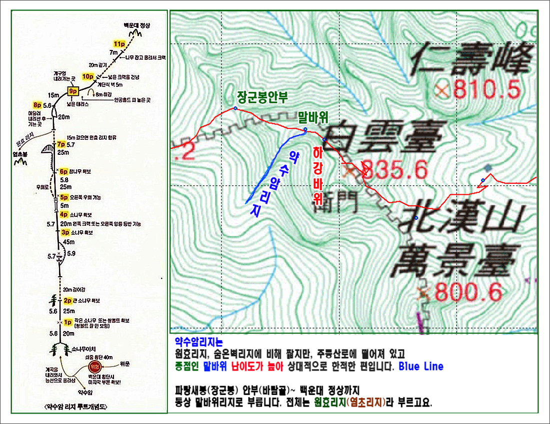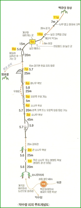 11피치 종료 후 백운대 정상. 7마디 이후 원효릿지 백운대 구간과 합류.